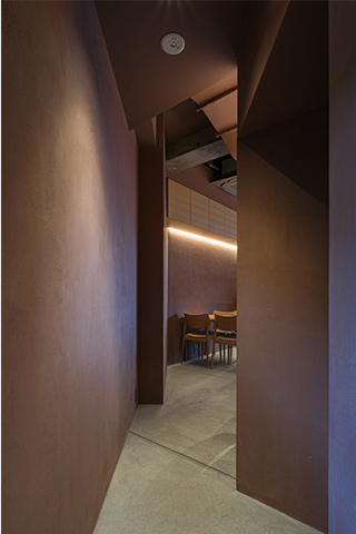 内部空間は茶褐色の塗装壁で覆い、名前の由来である土壌を彷彿とさせるしっとりとした仕上げとした。